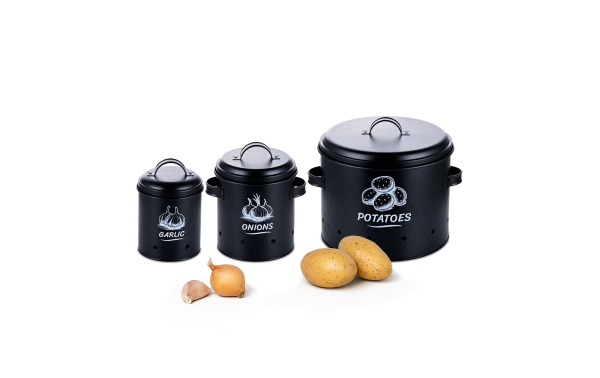 relaxdays Kartoffelbehälter 3er Set, Schwarz / 3er Set, Schwarz / Thema: Lebensmittelspender