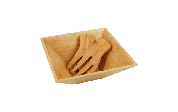 relaxdays Salatschüssel mit Salatbesteck 1 Stück, Hellbraun / Material: Bambus / Thema: Schüsseln & Schalen