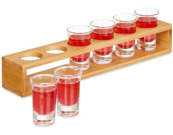 relaxdays Schnapsbrett mit 6 Gläser Natur/Transparent / Glas/Bambus aus China / Thema: Servierplatten