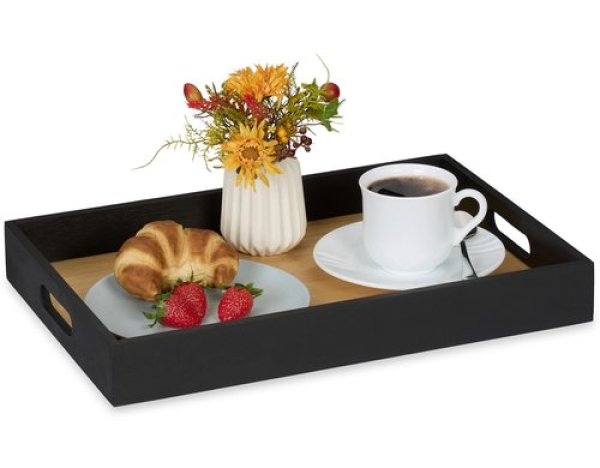 relaxdays Serviertablett Schwarz / MDF/Bambus aus China / Thema: Serviertablett