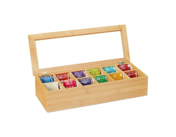 relaxdays Teebeutel-Box 12 Fächer, Hellbraun / Bambus, China, 12 Fächer / Thema: Teebeutel-Box