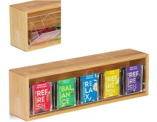 relaxdays Teebeutel-Box Braun / 11.5 x 39 x 8 cm / Thema: Teebeutel-Box