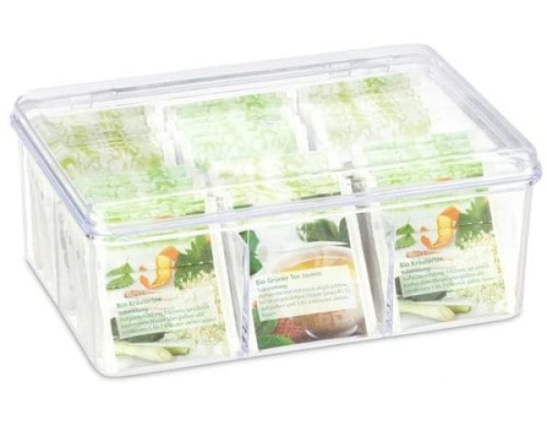 relaxdays Teebeutel-Box Transparent / 9 x 21.5 x 14.5 cm / Thema: Teebeutel-Box