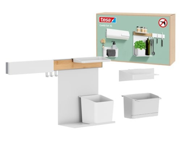tesa Kombi Set XL Bambus/Weiss / Tesa MyKitchen / Thema: Köchenutensilienhalter