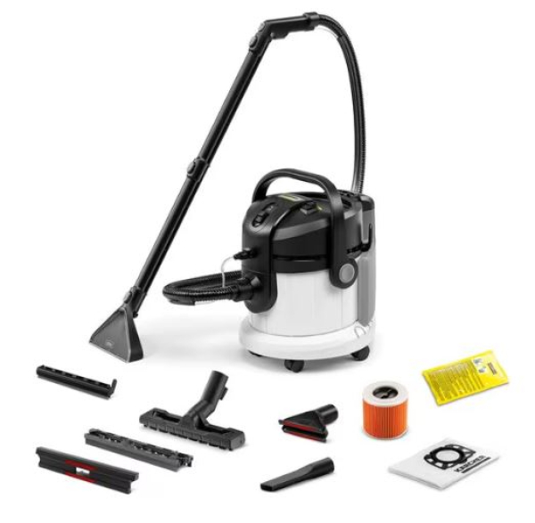 Fasertiefe Reinigung trifft auf ergonomischen Komfort und Multifunktionalität: Der Waschsauger SE 4 im attraktiven Schlittendesign sorgt für fasertiefe, hygienische Sauberkeit auf vielen textilen Oberflächen. Die bewährte Kärcher Sprühextraktions-Technologie bietet beste Reinigungsergebnisse: Frisches Leitungswasser und der Kärcher Teppichreiniger RM 519 werden mit Druck tief in die textilen Flächen eingesprüht und zusammen mit dem gelösten Schmutz wieder abgesaugt ideal geeignet für Familien, Allergiker und Haushalte mit Tieren. Als multifunktionales 3-in-1-Produkt kann das Gerät auch als vollwertiger Nass-/Trockensauger eingesetzt werden. Der grosse, lichtdurchlässige 4-Liter-Frischwassertank ist stossfest und abnehmbar, wodurch das Befüllen und Entleeren erleichtert wird. Das aufgesaugte Schmutzwasser wird im Gerätebehälter gesammelt. Der 3-in-1-Bügelgriff ermöglicht ein komfortables Tragen, Öffnen, Schliessen und Entleeren des Behälters. Das mitgelieferte Zubehör kann ordentlich am Gerät verstaut werden. Nach der Anwendung lässt sich das Gerät einfach reinigen für eine lange Produktlebensdauer.