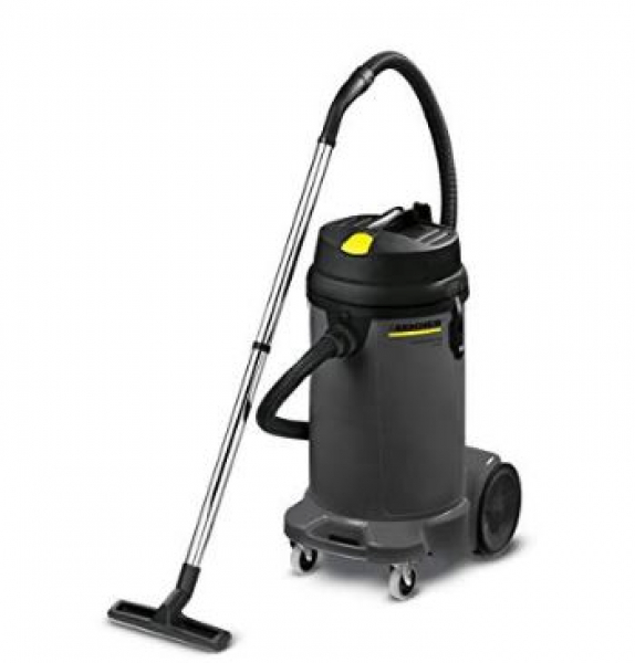 Der NT 48/1 hat ein Behältervolumen von 48 Litern. Das Gerät ist ausgestattet mit einem integrierten Netzkabelhaken am Turbinenkopf, einer Zubehöraufnahme für Saugrohre sowie einer Boden- und Fugendüse am Behälter. Der große Patronenfilter mit einer Filterfläche von 0,8 m² sorgt für eine konstant hohe Saugleistung des Gerätes. Das zuverlässige Schwimmersystem sorgt für eine rechtzeitige Unterbrechung des Luftstromes bei allen aufgesaugten Flüssigkeiten. Durch die große Ablagefläche auf dem Gehäusekopf lassen sich Werkzeuge oder andere Utensilien jederzeit griffbereit unterbringen. Ausgestattet ist der NT 48/1 zusätzlich mit einem Ablassschlauch und einem robusten Fahrwerk mit großen Bockrollen und Lenkrollen. Eine Feststellbremse und integrierte Griffmulden am Behälter ermöglichen einen einfachen Transport.