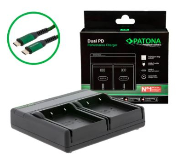 Passend für folgende Akkumodelle: OM/ Olympus BLX-1, BLX1 Die intelligente Ladetechnik erkennt automatisch die Spannung der eingelegten Akkus und verhindert wirkungsvoll Überladung oder Überhitzung.Zusätzlich bietet das PATONA Premium Dual PD Ladegerät eine praktische Powerbankfunktion über den USB-C Output. Mithilfe des im Lieferumfang enthaltenen USB-C Kabels können externe Geräte wie Tablets,Smartphones und mehr aufgeladen werden. Ein integriertes LCD-Display informiert jederzeit über den aktuellen Ladestatus. Technische Daten: Input: PD20W(4,2V/4,35V/8,4V) bzw. PD45W(4,2V/4,35V/8,4V/12,6V/16,8V) Output: USB-C 5V 2A Output: 4,2V/4,35V 800mA (x1), 800mA (x2) / 8,4V 1000mA (x1), 1000mA (x2) / 12,6V/16,8V 1500mA (x1), 1000mA (x2) Lieferumfang: - 1 PATONA Premium Dual PD Ladegerät - 1 PATONA Premium USB-C Kabel - 1 PATONA Premium Aufbewahrungstasche - 1 Bedienungsanleitung via QR-Code
