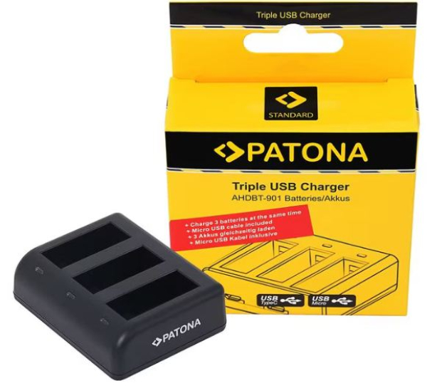 Patona Ladegerät für GoPro Hero 9, Hero 10 und Hero 11