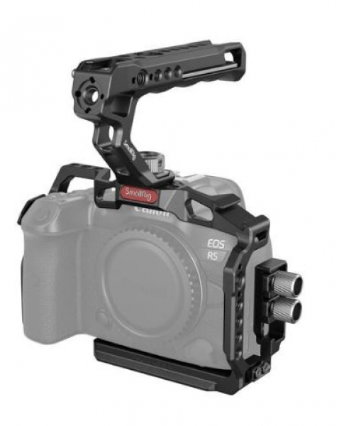 Das SmallRig Handheld Kit für Canon EOS R5/R6/R5 C wurde entwickelt, um Aufnahmen aus niedrigen Winkeln zu erleichtern, Kameras zu schützen und Zubehörhalterungen bereitzustellen. Das Kit umfasst einen speziellen Vollkäfig, eine Kabelklemme und einen ARRI-Topgriff. Der Käfig fixiert die Kamera mit einer Schraube und zwei Fixierstiften, um ein Verdrehen zu verhindern. Es bietet eine breite Palette von Befestigungspunkten wie 1/4''-20-Gewindebohrungen, ARRI 3/8"-16-Aufnahmebohrungen, Kühlschuhe, Arca-Schnellwechselplatte, Monitorhalterung, Seitengriff, Schnellwechselplatte (Manfrotto 501 Style) 1280, LED-Licht, Mikrofon, DJI RS 2/RSC 2, usw., geeignet für Stativ-, Handheld- und Stabilisatoraufnahmen. Die HDMI- und Typ-C-Kabelklemme verhindert ein versehentliches Trennen der Verbindung und sorgt für eine stabile Signalübertragung; der ergonomisch geformte obere ARRI-Griff bietet ein komfortables und stabiles Niedrigwinkel-Aufnahmeerlebnis und ist mit 1/4''-20-Gewindebohrungen, ARRI 3/8"-16-Aufnahmelöchern und kalten Schuhen ausgestattet, die Monitorhalterungen, Magic Arms usw. unterstützen.