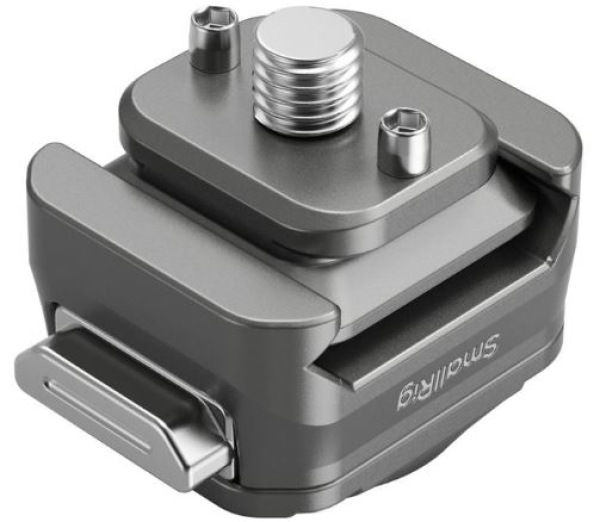 Das HawkLock H21 Universal 1/4"-20 Quick Release Mount Plate Kit von SmallRig ist eine kompakte Aluminium-Grundplatte und Schnellwechselplatte mit einer 1/4"-20 Anti-Twist-Schraube. Dieses System verfügt über einen HawkLock-Schnellverschluss mit Knopfdruck, der sich ideal für die schnelle Montage und Demontage eines Monitors, einer LED-Leuchte, eines Mikrofons oder anderen kleinen Kamerazubehörs mit Steckschuhadapter eignet. Der Sockel verfügt über ein 1/4"-20 Gewinde mit verdrehsicheren Aussparungen für die Montage an einem Käfig oder Rig. Das SmallRig HawkLock-System verfügt über Rollen und einen Sicherheitsstift, die ein einfaches An- und Abmontieren mit Hilfe der HawkLock-ähnlichen Aussparungen ermöglichen. Das Set hat eine Tragfähigkeit von 5 kg.