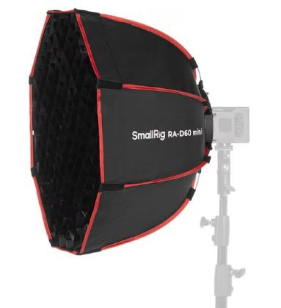 Die SmallRig RA-D60 Mini- Parabol- Softbox ist eine Softbox mit 60 cm (23.6 Zoll) Durchmesser, die speziell für die COB-Leuchten der RC60/100-Serie entwickelt wurde. Dank des Schnellverschluss-Quetschmechanismus sind Auf- und Abbau mühelos, was das Benutzererlebnis optimiert und für optimale Benutzerfreundlichkeit sorgt. Wird mit einem 45°-Raster geliefert, um Streulicht effektiv zu kontrollieren und ist für eine grössere Bandbreite von Szenarien geeignet. Oxford-Diffusormaterial in Industriequalität und hochleistungsfähige Antireflexbeschichtung für einen gleichmässig weichen Lichteffekt und minimalen Lichtverlust.