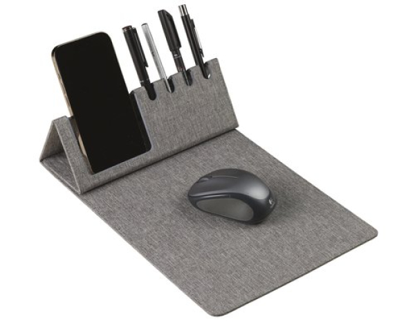 Kolma Mausmatte RPET Grau / mit Smartphone und Stiftehalter / Thema: Mausmatte