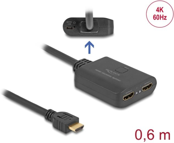 DeLock 18650 - HDMI Splitter 1 x HDMI in zu 2 x HDMI out 4K 60 Hz mit Downscaler