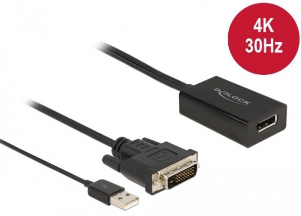 DeLock 63189 - Adapter DVI Stecker zu DisplayPort 1.2 Buchse schwarz 4K mit HDR Funktion 50 cm