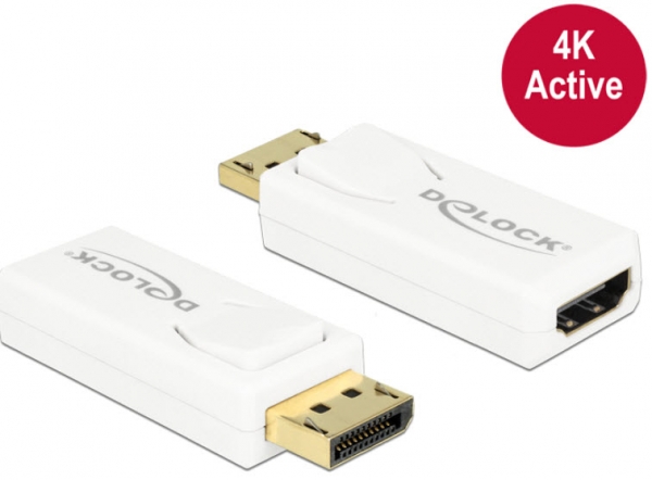 DeLock 65580 - Adapter Displayport 1.2 Stecker > HDMI Buchse 4K Aktiv - Weiss