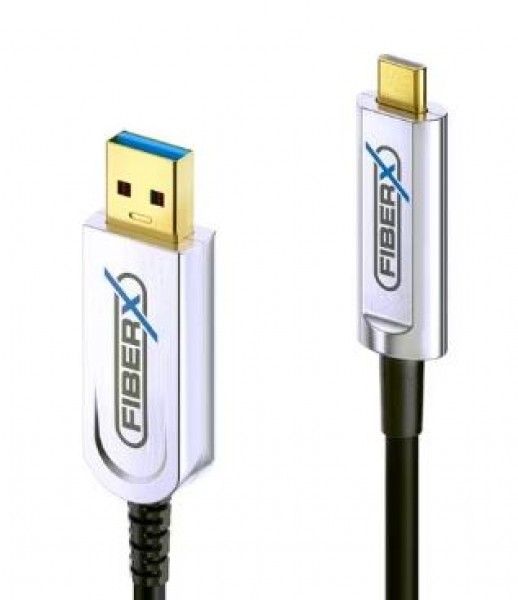 Das FX-I630 ist ein AOC Hybridkabel mit 4.5mm Aussendurchmesser. Es entspricht der Spezifikation USB 3.1 (Gen2), ist abwärtskompatibel mit USB 2.0 und ist daher für Datenübertragungsraten von bis zu 10Gbps geeignet. Das Kabel ist auf der einen Seite mit einem USB-C-Anschluss und auf der anderen Seite mit einem USB-A-Anschluss ausgestattet, beide mit vergoldeten Präzisions-Steckkontakten. Durch seinen hybriden aufbau aus Glasfasern zur AV Übertragung sowie Innenleitern aus Strom zur Übertragung von Strom und Daten bietet es vollständigen Schutz gegen elektromagnetische Interferenzen sowie eine niedrige Dämpfung für perfekte Übertragungsqualität. Das Kabel benötigt keine externe Stromversorgung, es wird direkt über den USB-Anschluss gespeist.