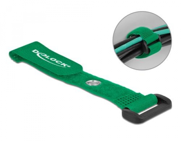 Delock Klettkabelbinder Grün 150 mm x 20 mm 5 Stück / Mit Schlaufe und Befestigungsöse / Thema: Kabelbinder