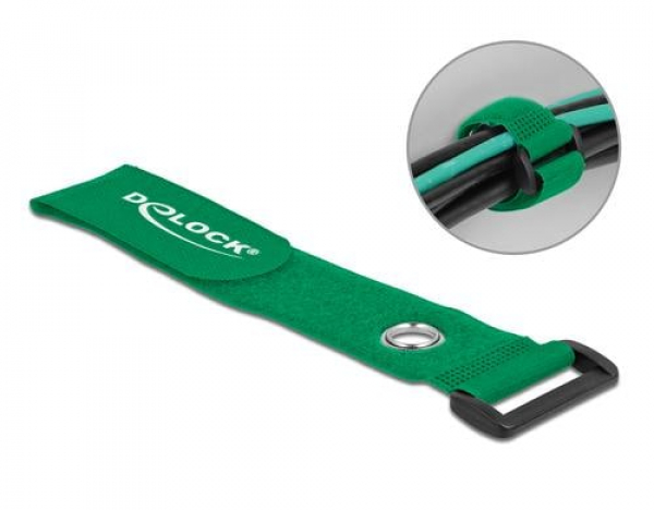 Delock Klettkabelbinder Grün 280 mm x 38 mm 3 Stück / Mit Schlaufe und Befestigungsöse / Thema: Kabelbinder