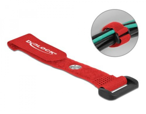 Delock Klettkabelbinder Rot 150 mm x 20 mm 5 Stück / Mit Schlaufe und Befestigungsöse / Thema: Kabelbinder