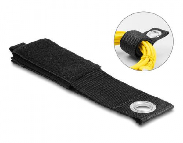 Delock Klettkabelbinder Schwarz 435 mm x 50 mm / mit Befestigungsöse, L 435 x B 50mm,schwarz / Thema: Kabelbinder