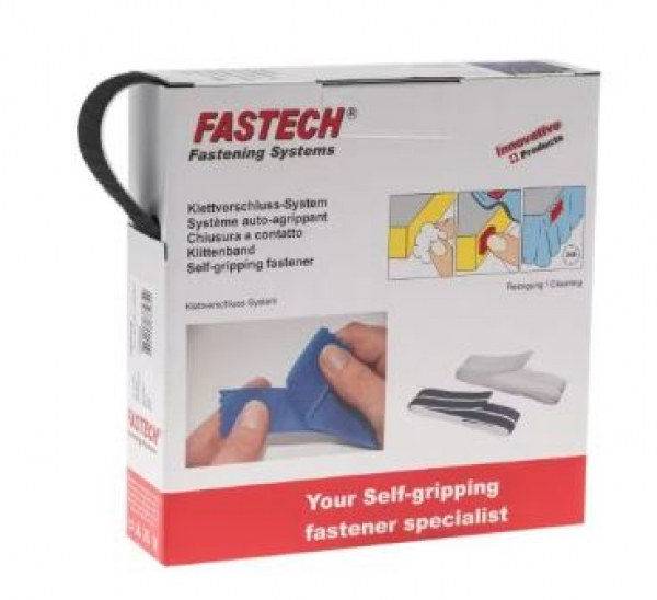 FASTECH Hakenseite Box 25 mm x 10 m selbstklebend, Schwarz
