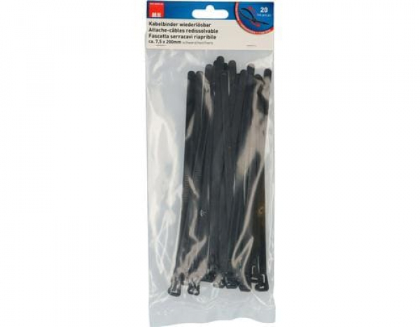Max Hauri Kabelbinder 20 Stück Schwarz 20 cm x 7.5 mm / schwarz, 20 Stück, wiederlösbar / Thema: Kabelbinder