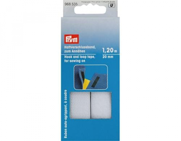 Prym Klettbandverschluss 1.2 m zum Annähen, Weiss / 20 mm, Karte 1.2 m, zum Annähen / Thema: Klettbänder