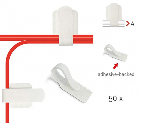 Praktisches 50er Set aus Klett-Kabelhaltern in Weiss zum Fixieren von Kabel oder Leitungen an nahezu jeder Oberfläche