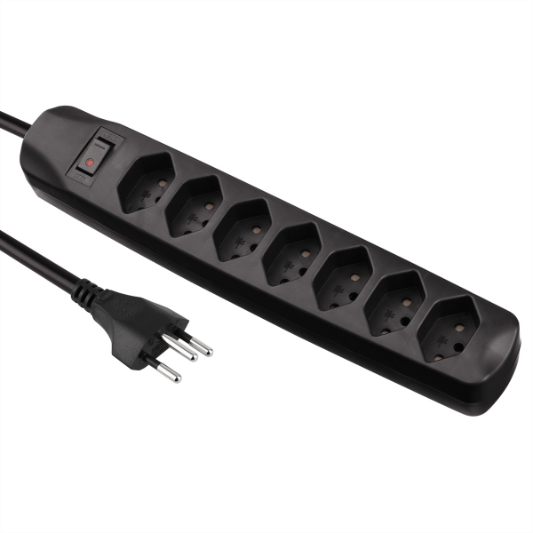 Blank Steckdosenleiste, 7xT13, mit Schalter, schwarz