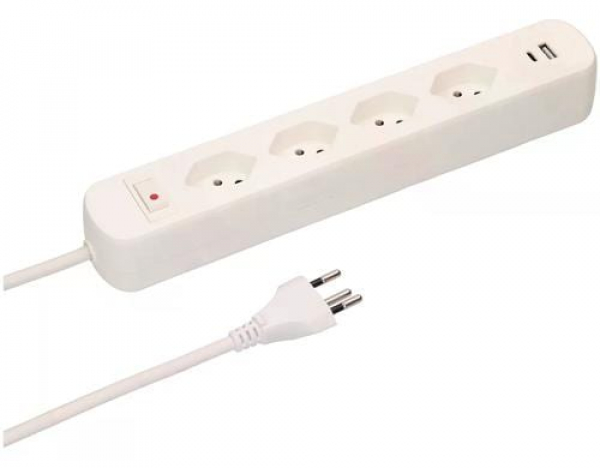 Max Hauri Steckdosenleiste Basic-Line 4x T13, USB A+C, Schalter, Ws / 4x T13, 1x USB-A/C, weiss, 1.5m Kabel / Thema: Steckerleisten