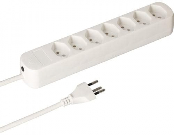 Max Hauri Steckdosenleiste Basic-Line 7xT13, 1.5 Meter / 7xT13, weiss, mit Reset-Schalter / Thema: Steckerleisten