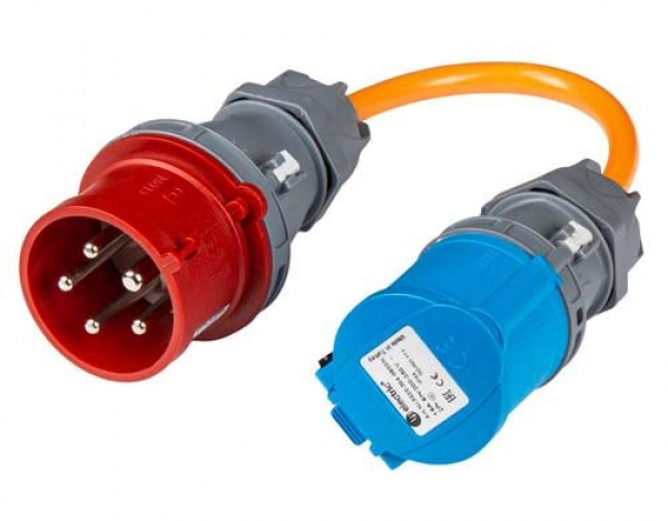 Normrahmen Adapterkabel CEE16/3 - CEE16/5 / Mobiler Lader an roter CEE16-5 Dose / Thema: Netzkabel