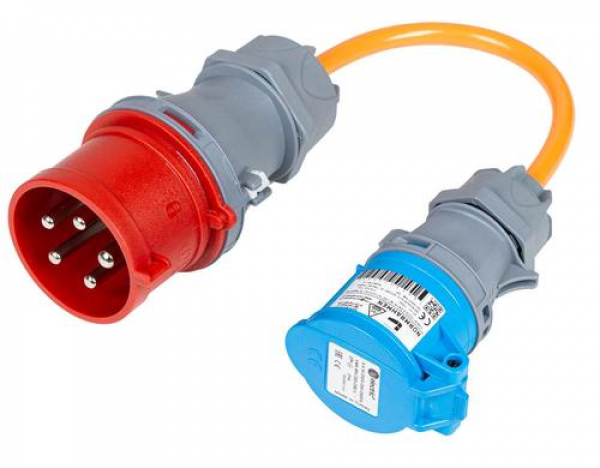 Normrahmen Adapterkabel CEE16/3 - CEE32/5 / Mobiler Lader an roter CEE32-5 Dose / Thema: Netzkabel