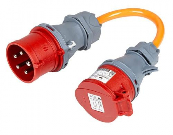 Normrahmen Adapterkabel CEE32/5 - CEE16/5 / Mobiler Lader an roter CEE16-5 Dose / Thema: Netzkabel