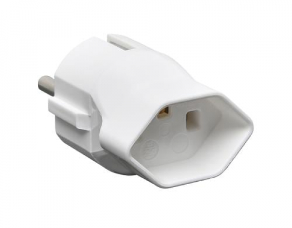 Reiseadapter D/CH, Schutzkontakt Stecker /Buchse T23, weiss