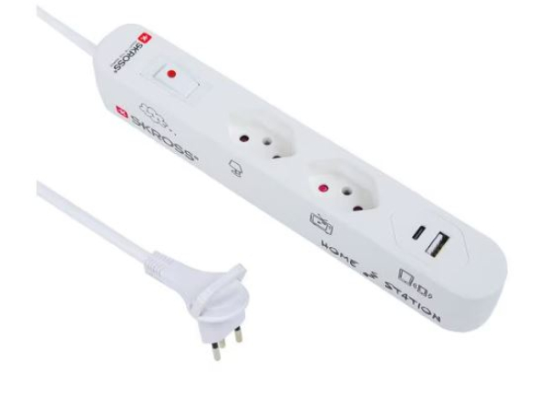 SKROss Steckdosenleiste 2 x T13, USB-A+C, mit Schalter, 1.5 m