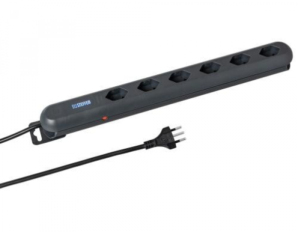STEFFEN Steckdosenleiste STEBA LINEA PLUS 6 T13 / Steckdosen quer, schwarz, 3m Kabel, Magnet / Thema: Steckerleisten