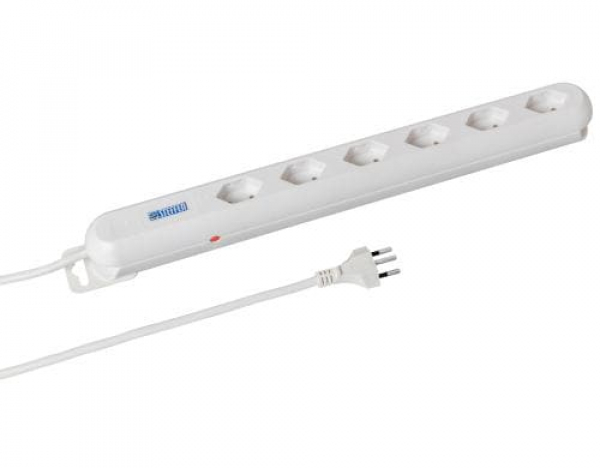STEFFEN Steckdosenleiste STEBA LINEA PLUS 6 T13 / Steckdosen quer, weiss, 3m Kabel, Magnet / Thema: Steckerleisten