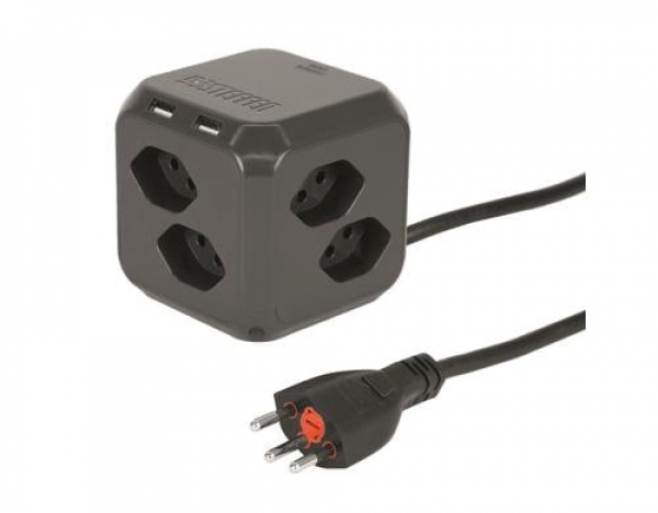 STEFFEN Stromverteiler CUBE 8x T13 2x USB-A / 8x T13, 1.5m Zuleitung, mit Klebeband / Thema: Steckerleisten