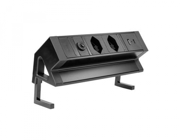 STEFFEN Tischsteckdosenleiste ALU DESK 2x T13, USB-A+C, Schwarz / schwarz, 1.5m Kabel / Thema: Steckerleisten