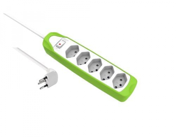 Schönenberger Steckdosenleiste 5x T13 Weiss / Grün / Silikon Cover, 2m, Kinderschutz / Thema: Steckerleisten
