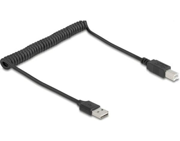 Delock USB 2.0-Spiralkabel USB A - USB B 0.8 m / EASY USB, beidseitig einsteckbar, schwarz / Thema: USB-Kabel