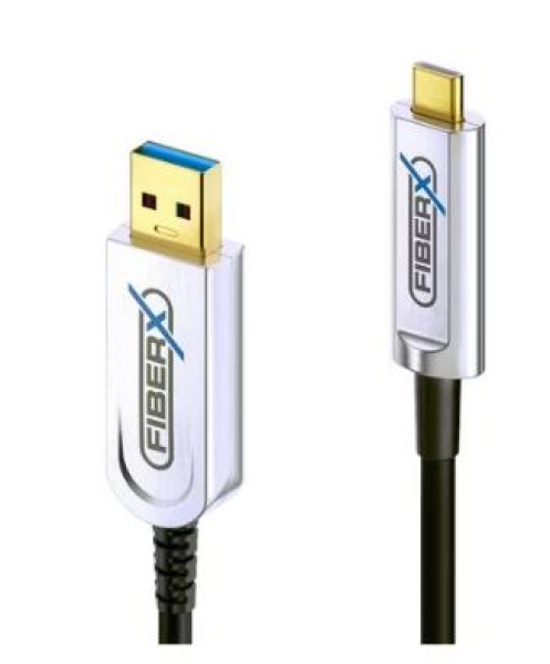 Das FX-I630 ist ein AOC Hybridkabel mit 4.5 mm Aussendurchmesser. Es entspricht der Spezifikation USB 3.1 (Gen2), ist abwärtskompatibel mit USB 2.0 und ist daher für Datenübertragungsraten von bis zu 10Gbps geeignet. Das Kabel ist auf der einen Seite mit einem USB-C-Anschluss und auf der anderen Seite mit einem USB-A-Anschluss ausgestattet, beide mit vergoldeten Präzisions-Steckkontakten. Durch seinen hybriden aufbau aus Glasfasern zur AV Übertragung sowie Innenleitern aus Strom zur Übertragung von Strom und Daten bietet es vollständigen Schutz gegen elektromagnetische Interferenzen sowie eine niedrige Dämpfung für perfekte Übertragungsqualität. Das Kabel benötigt keine externe Stromversorgung, es wird direkt über den USB-Anschluss gespeist.