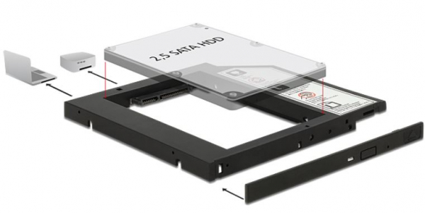DeLock 62669 - Einbaurahmen für 1x2.5 Zoll HDD/SDD - für Einbau in Slim DVD-Slot im Notebook/Mini-PC