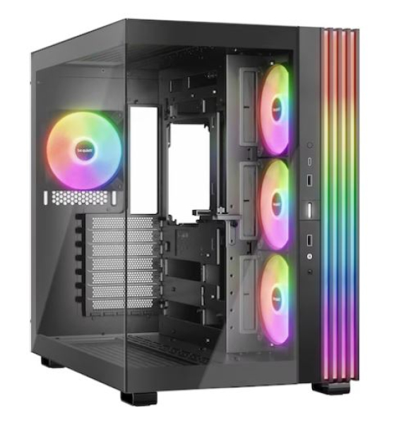 Das Light Base 600 LX ist für den großen Auftritt geschaffen. Nichts beweist das mehr als der massive ARGB LED-Streifen, der aus jedem Winkel sichtbar ist. Der 1,33m lange Streifen besteht aus 77 LEDs. Durch eine ARGB-Steuerung und der Möglichkeit die Beleuchtung mit dem Mainboard zu synchronisieren, kannst du Light Base 600 LX zu deinem ganz eigenen Gehäuse machen. Light Base 600 LX hat 4 vorinstallierte Light Wings LX Lüfter. Der Lüfter auf der Rückseite arbeitet als Luftauslass, 3 Light Wings LX 120mm PWM mit invertierten Lüfterblättern sind an der Seite vormontiert. Diese Lüfter stellen sicher, dass dein System ein echter Blickfang bleibt. Die 7 airflow-optimierten Lüfterblätter reduzieren nicht nur geräuschverursachende Luftverwirbelungen. Sie sorgen auch dafür, dass die Lüfter auch unter fordernden Bedingungen die geforderte Performance liefern. Mit seinen abnehmbaren Füßen kannst du dieses Gehäuse wortwörtlich in Sekunden invertieren. Du kannst es auch horizontal positionieren, was genauso schnell geht. Du kannst die 4 vorinstallierten Lüfter mit bis zu 6 weiteren Lüftern ergänzen und somit bis zu 10 Lüfter verbauen. Dadurch wird Light Base 600 LX extrem flexibel. Dank seines geräumigen Designs, kann das Gehäuse außerdem bis zu zwei 360mm Radiatoren, ein ATX-Mainboard und selbst stärkste Grafikkarten gleichzeitig aufnehmen. Dank seines 2-Kammer-Designs sind Laufwerke und Kabel geschickt an der Rückseite montiert und ermöglichen starken Airflow. Neben den Radiatoren im Deckel und Boden kannst du einen weiteren 240mm Radiator an der Seite und somit unglaubliche 3 Radiatoren gleichzeitig installieren. Light Base 600 LX hat 2 ARGB und PWM-Hubs mit insgesamt 12 Anschlüssen. Ihre Positionen oben und unten im Gehäuse ermöglichen dir einen einfachen Anschluss deiner Hardware. Das Light Base 600 LX kommt mit einem flexiblen Grafikkartenhalter der subtil deine Grafikkarte am Absinken hindert. Das Beste daran: Der Grafikkartenhalter funktioniert in alle Richtungen, sowohl mit horizontal als auch vertikal installierten GPUs. Somit sieht dein System selbst mit schwerster Hardware aufgeräumt aus.