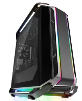 Das COSMOS C700M mit einer Panorama Sichtscheibe aus gehärtetem Glas mit zwei gebogenen Kanten bietet freie Sicht auf die verbauten Komponenten. Das einziegartige Rahmendesign unterstützt verschiedene Layout-Möglichkeiten: Standard, umgekehrtes Layout oder ein vollständig angepasstes Layout. Von multifunktionalen Halterungen bis zu Optionen für die Positionierung der Komponenten - das COSMOS C700M bietet völlige Freiheit beim Zusammenbauen des PC-Systems. Die Grafikkartenhalterung kann vertikal oder horizontal an der Netzteil-Mittelplatte oder am M-Port angebracht werden. Die Halterung kann auch von 0 bis 90 Grad gedreht werden. Außerdem ist ein 400-mm-Riser-Kabel enthalten, um eine vertikal montierte Grafikkarte mit dem Motherboard verbinden zu können (M. Port ist das modulare Montagesystem von Cooler Master, das die Montageoptionen für Hardware und Halterungen erweitert). Zwei parallele Streifen adressierbarer RGB-Beleuchtung verlaufen kontinuierlich vom Top Panel zur Frontplatte, wobei die ARGB-Umgebungsbeleuchtung an der Unterseite gegen die Aluminiumschienen reflektiert wird. Die 3 mitgelieferten Abdeckungen können entweder auf dem M. Port oder auf der Mid-Plate platziert werden, mit der Möglichkeit, SSD-Speicher oder ein Reservoir zu montieren. Eine flache Kühlerhalterung bietet mehr Flexibilität für die Flüssigkeitskühlung und kann an der Oberseite, der Vorderseite oder der Unterseite des Rahmens montiert werden. Die zwei mitgelieferten Halterungen können jeweils einen 420 mm Radiator tragen, mit der Möglichkeit, Lüfter und einen Kühler auf jeder Seite der Halterung zu montieren. Das erweiterte I / O-Panel wird mit einer 4-poligen Kopfhörerbuchse (Audio + Mikrofon), dedizierter Mikrofonbuchse, USB 3.1 (Gen 2) Typ-C-Anschluss, vier zusätzlichen USB 3.0-Anschlüssen, PWM-Lüftergeschwindigkeitstaste und adressierbarer RGB-Steuertaste geliefert.