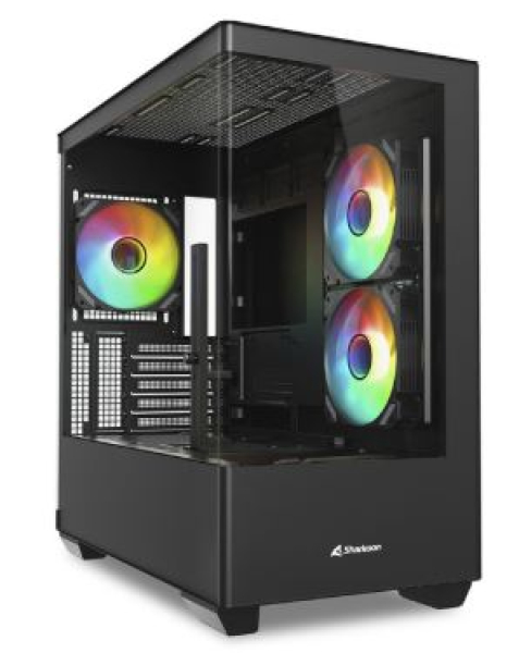 Mit seiner durchgehenden Glasfront bietet das ELITE SHARK CM100 von Sharkoon eine spektakuläre Bühne für deine Hardware – und das auf kompaktem Micro-ATX-Format. Dank Platz für bis zu zwei Radiatoren, seitlichem Lufteinzug und vier bereits vorinstallierten Lüftern überzeugt das Gehäuse auch mit exzellenter Kühlleistung. Moderne Anschlussmöglichkeiten und die Unterstützung aktueller BTF-Mainboards machen das Micro-ATX-Gehäuse zur idealen Wahl für ambitionierte Hardware-Enthusiasten. Die speziell gestaltete Glasfläche des ELITE SHARK CM100 erlaubt einen beeindruckenden 270-Grad-Blick ins Gehäuseinnere und bringt Highend-Komponenten eindrucksvoll zur Geltung. Trotz der großen Glasflächen sorgt der seitliche Lufteinzug in Kombination mit vier vorinstallierten 120-mm-ARGB-Lüftern für eine starke Kühlleistung. Eine integrierte ARGB-Steuerung sowie einen PWM-Lüfterhub mit fünf Plätzen ist ebenfalls an Bord. Das ELITE SHARK CM100 ist trotz kleinem Formfaktor wie geschaffen für aufwendige Wasserkühlungssysteme und bietet ausreichend Platz für bis zu zwei Radiatoren gleichzeitig. Das ELITE SHARK CM100 unterstützt auch moderne Micro-ATX-Mainboards mit BTF-Layout, die durch rückseitig platzierte Anschlüsse für ein besonders aufgeräumtes Kabelmanagement sorgen. Trotz des Micro-ATX-Formfaktors finden Grafikkarten bis zu einer Länge von 400 mm, CPU-Kühler bis 173 mm Höhe sowie Netzteile mit bis zu 183 mm im Inneren Platz. Wer viel Speicher benötigt, wird ebenfalls fündig: Das Gehäuse erlaubt die Montage von bis zu zwei 3,5-Zoll-Festplatten oder bis zu drei 2,5-Zoll-SSDs.