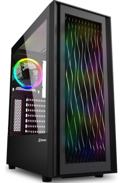 Für Gamer oder Wellenreiter: Die luftdurchlässige Frontblende des RGB Wave ziert ein eindrucksvolles 3D-Wellenmuster, hinter dem gleich drei RGB-Lüfter erstrahlen. Zusammen mit dem an der Rückseite installierten 120-mm-Lüfter bleibt in dem Midi-ATX-Gehäuse direkt alles cool. Zusätzlich verfügt das RGB Wave über eine I/O-Blende mit zwei USB 3.2-Anschlüssen und einem USB-Type C-3.2 Gen 2-Anschluss, sowie ein Seitenteil aus gehärtetem Glas. Beim RGB Wave bietet die Front einen besonderen Blickfang. Über die Vorderseite spannen sich Kunststoff-Lamellen, die dem Ganzen ein spezielles 3D-Wellen-Design verleihen. Dieses wird hervorgehoben durch die Beleuchtung der drei 120-mm-RGB-Lüfter, die direkt dahinter vorinstalliert sind. Den letzten Schliff gibt der Rahmen mit Karbonfaser-Textur, der um das Wellenmuster herum verläuft. Im RGB Wave ist alles gegeben, um eine kühlende Belüftung möglich zu machen, angefangen bei der Front, durch die Luft einfach ins Gehäuse fließen kann. Es sind ab Werk direkt vier 120-mm-RGB-Lüfter eingebaut, drei in der Front und einer an der Rückseite. Um den Airflow weiter zu begünstigen, ist an der Oberseite optional Platz für zwei weitere Lüfter mit einem Durchmesser von 120 mm oder 140 mm. Auch an der Oberseite des Netzteiltunnels lässt sich bei Bedarf noch ein 120-mm-Lüfter installieren. Neben seiner schicken Front ist das RGB Wave durch das Seitenteil aus gehärtetem Glas zusätzlich ein eleganter Schaukasten. Die eingebauten Komponenten kommen bestens zur Geltung und lassen sich optimal präsentieren. Um den klaren und aufgeräumten Eindruck möglich zu machen, können sämtliche Kabel mittels Kabeldurchlässen aus dem Blickfeld geführt werden. Mit seinen schlanken Abmessungen macht das RGB Wave eine gute Figur und lässt sich einfach in jedes Setup integrieren. Gleichzeitig findet in dem kompakten Midi-ATX-Gehäuse auch größere Hardware ihren Platz: Grafikkarten können bis zu 33,5 cm lang sein, CPU-Kühler bis zu 15,7 cm hoch und Netzteile bis zu 17,5 Zentimeter lang. Wer Wert auf massig Speicherplatz legt, kann bis zu fünf SSDs im Gehäuse montieren. Zusätzlich lassen sich zwei 3,5-Zoll-HDDs im Festplattenkäfig unterbringen, wenn dort keine SSDs installiert sind.