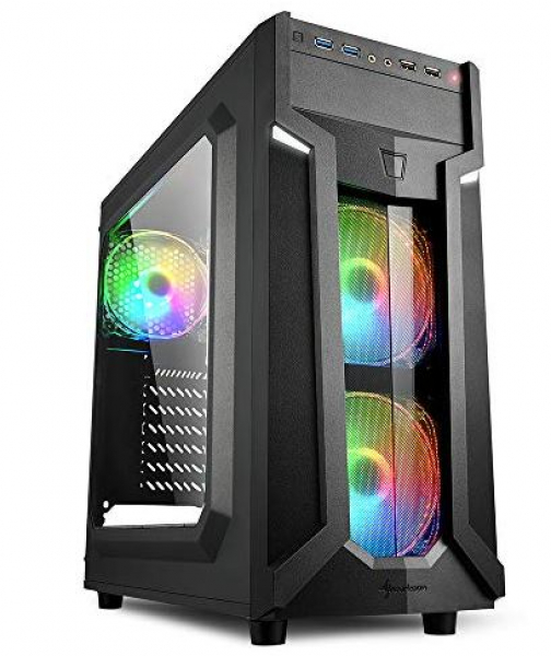 Der VG6-W RGB ATX Midi Tower besticht vor allem durch seine retrofuturistische Frontblende und sein kompaktes Gehäusedesign, das für preisbewusste Gamer mit luftgekühlten Systemen konzipiert wurde. Ab Werk sind daher bereits drei adressierbare 120-mm-RGB-LED-Lüfter vorinstalliert, die nicht nur für mehrfarbige Highlights hinter der Front und dem Seitenteil mit Acryl-Fenster sorgen, sondern auch für einen reibungslosen Airflow. Retrofuturistischer Hingucker. Die Frontblende des VG6-W verleiht dem Gehäuse einen einzigartigen retrofuturistischen Anstrich, der besonders Gamer ansprechen soll. Die wie Augen angeordneten LEDs im oberen Bereich der Frontblende sorgen für einen ausdrucksstarken Charakter. Das kantige Acryl-Fenster darunter lässt die verbauten Lüfter besonders gut zur Geltung kommen. Die Hardware im Blick. Das VG6-W ist an einer Seite mit einem großen Acryl-Fenster ausgestattet, durch das man seine verbaute Hardware zeigen kann. Es eignet sich aber nicht nur zum Präsentieren dieser, sondern ebenso für zeigefreudige Innenraum-Modifikationen und beleuchtete Komponenten. Kompaktes Gehäusedesign. Das Gehäuse ist so kompakt wie möglich gehalten, ohne Abstriche bei der Hardware-Kompatibilität zu machen. Es fasst bis zu vier SSDs und bis zu drei HDDs sowie ein optisches Laufwerk. Auf Unnötiges haben wir bewusst verzichtet. Optimierte Lüfterkonfiguration. Das VG6 eignet sich am besten für luftgekühlte Systeme. Gerade deshalb sind bereits zwei adressierbare 120-mm-RGB-LED-Lüfter in der Front und ein adressierbarer 120-mm-RGB-LED-Lüfter in der Rückseite vorinstalliert. Die Lüfter sind jeweils mit neun adressierbaren LEDs ausgestattet und können in bis zu 16,8 Millionen Farben beleuchtet werden.