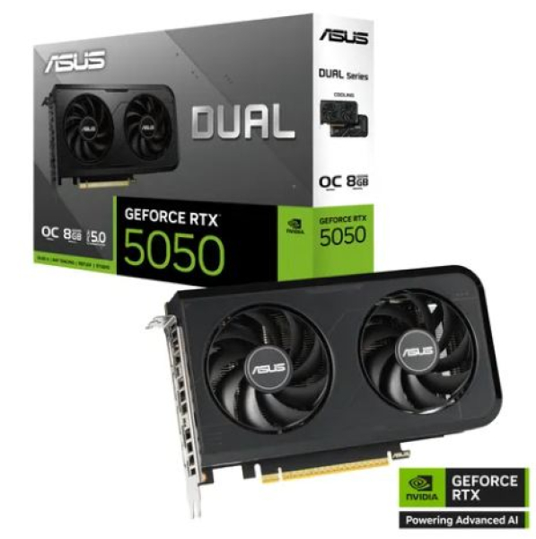 Die ASUS GeForce RTX 5050 DUAL OC 8GB ist eine High-End-Grafikkarte mit der GeForce RTX 5050 GPU von NVIDIA. Die leistungsfähigen GeForce RTX 50-Grafikkartenserie basiert auf der NVIDIA Blackwell Architektur und bietet neue Stufen von Gaming Realismus, Geschwindigkeit und Leistungseffizienz, AI Features wie Frame Generation, Multi Frame Generation und realistische VR-Erlebnisse. Weitere Features sind Real-Time Ray Tracing, Ray-Reconstruction, NVIDIA Ansel, mit umfangreichen Werkzeugen zur Erstellung von Screenshots in Spielen sowie NVIDIA G-SYNC, G-SYNC HDR, NVIDIA DLSS 4, ShadowPlay, Highlights, NVENC Gen 9, AV1 Encoder und Decoder. Die auf der ASUS GeForce RTX 5050 DUAL OC 8GB verbaute GPU verfügt über 2560 CUDA Cores. Der 8 Gbyte große GDDR6-Speicher verfügt über einen 128-Bit-Speicherkontroller.